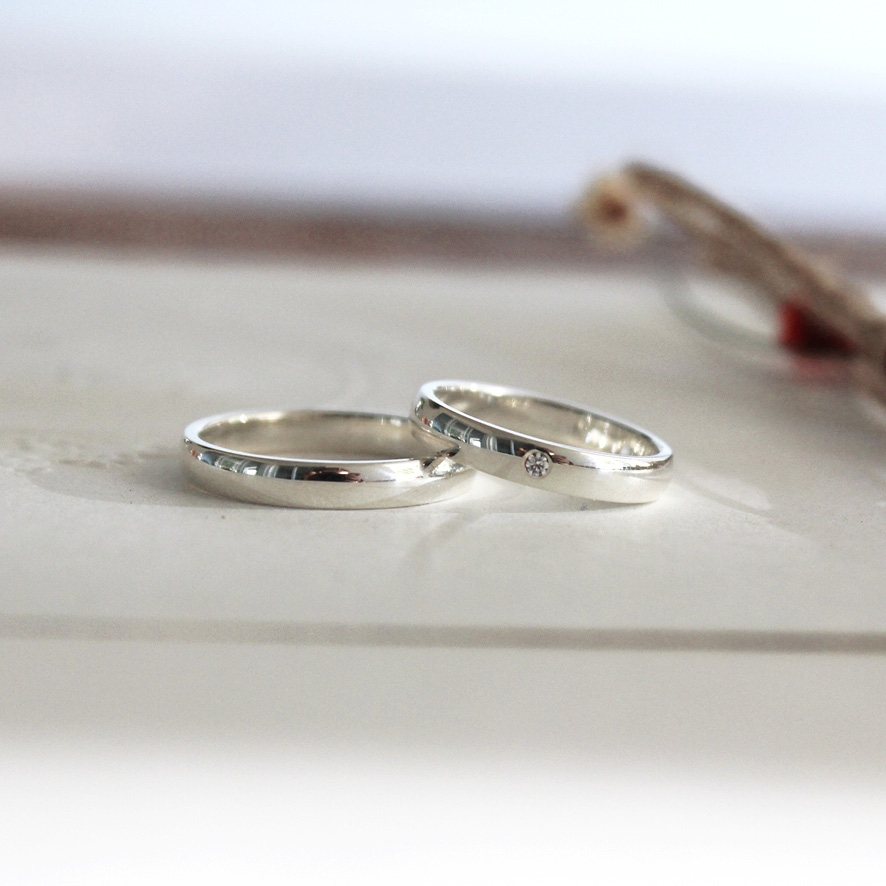 Alianças artesanais feitas em prata 960 e topázio transparente.