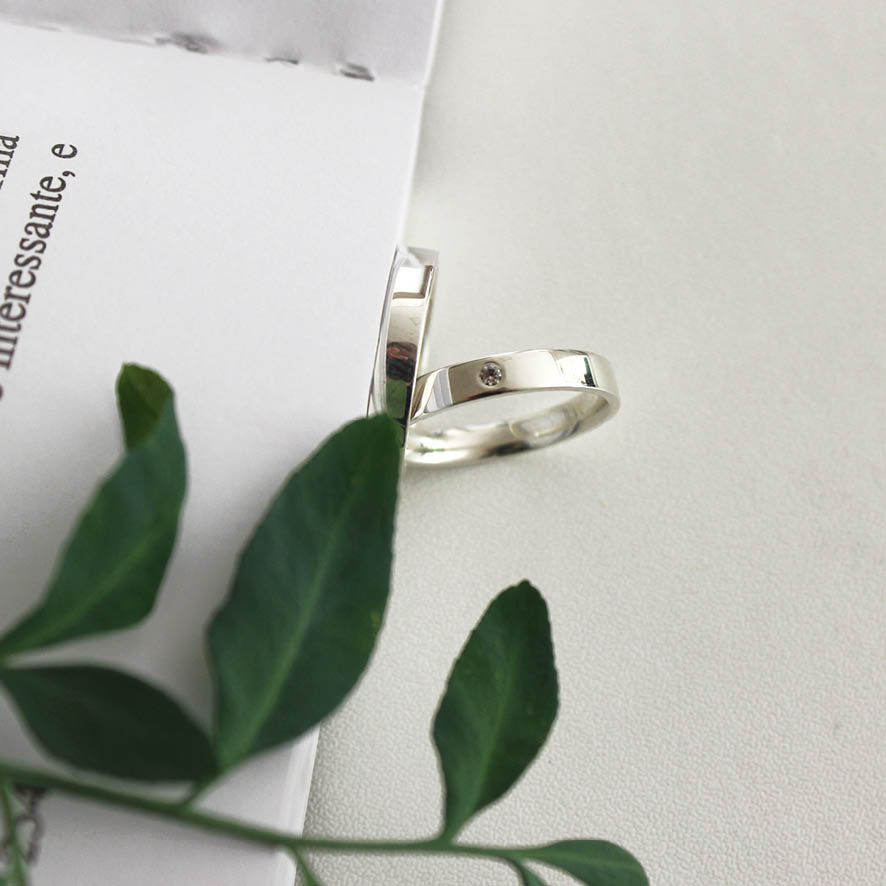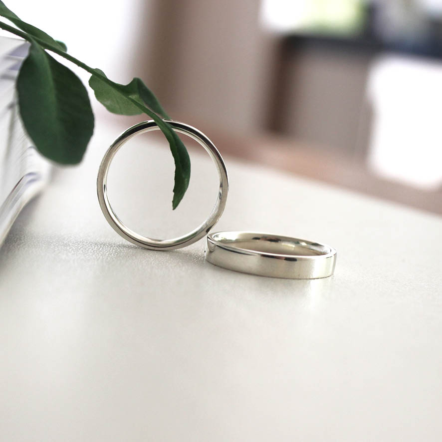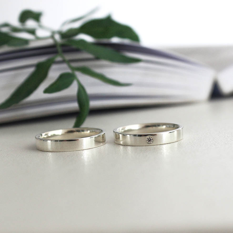 Alianças Julia em prata. Modelo reto por fora e anatômico por dentro