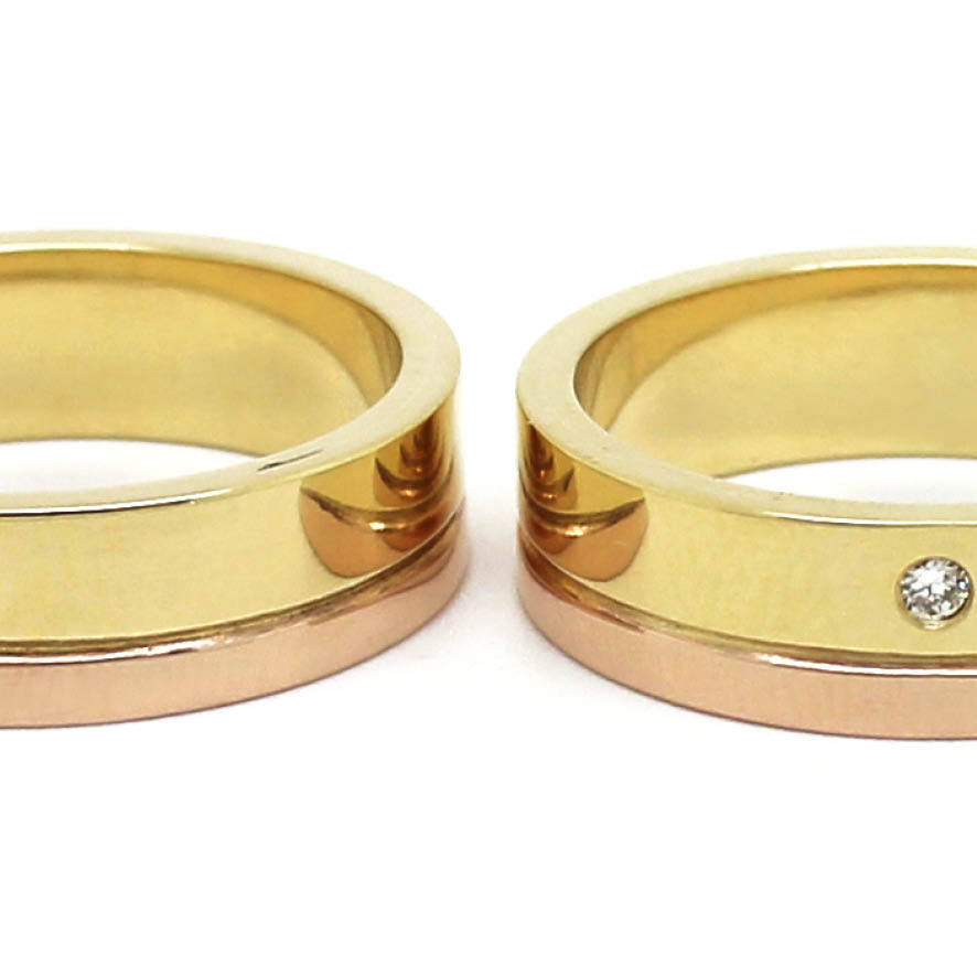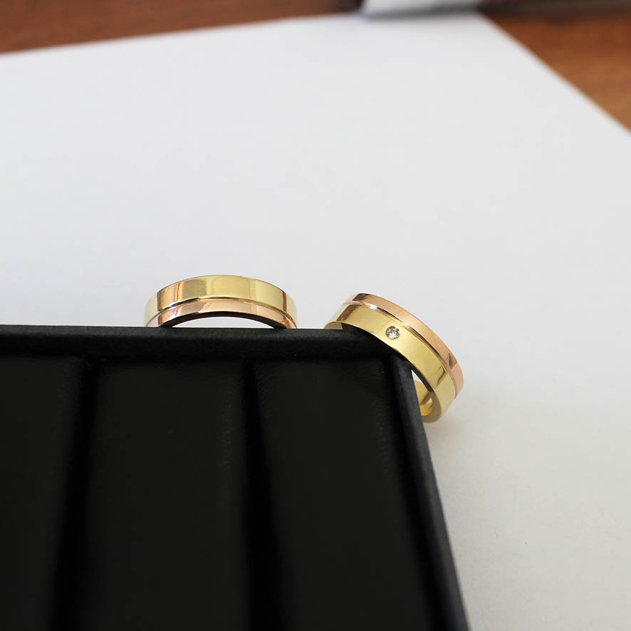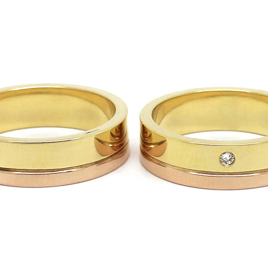 Alianças ouro amarelo e rosé – com diamante