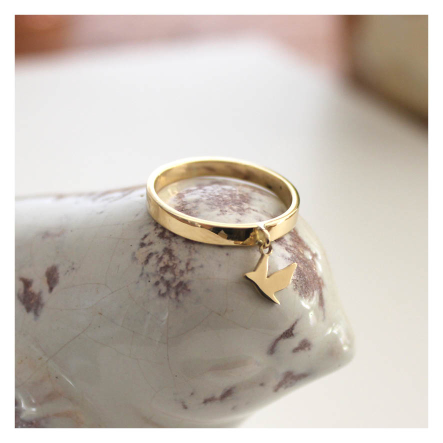 Anel Andorinha feito à mão em ouro amarelo 18k.