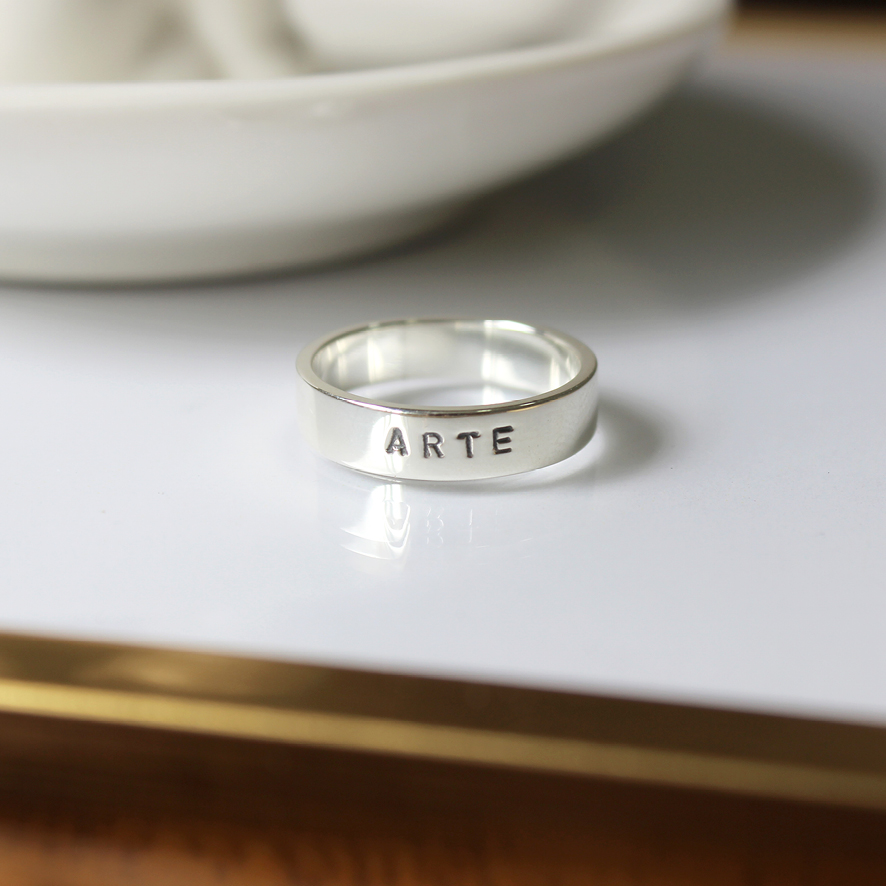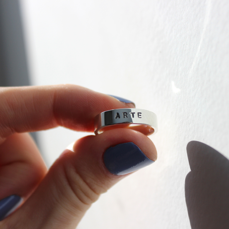 Anel Carimbo “arte” feito à mão em prata 960. *Para vermos se é possível gravar outra palavra ou nome, entre em contato pelo WhatsApp 19 98241-0234.