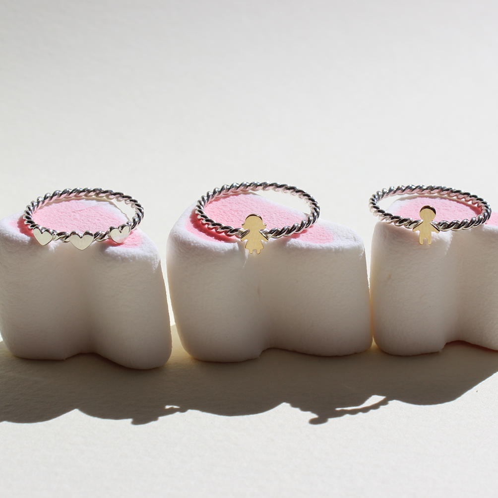 Anel filho ou filha – joia em prata com ouro