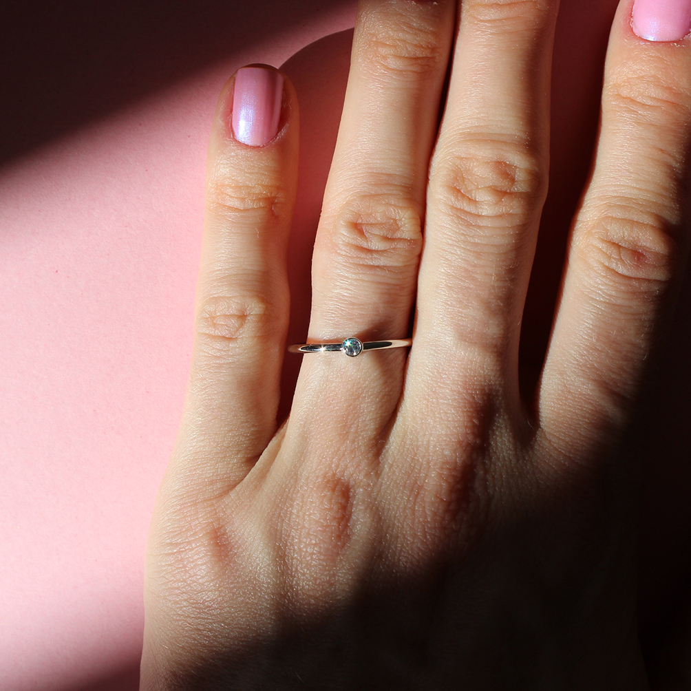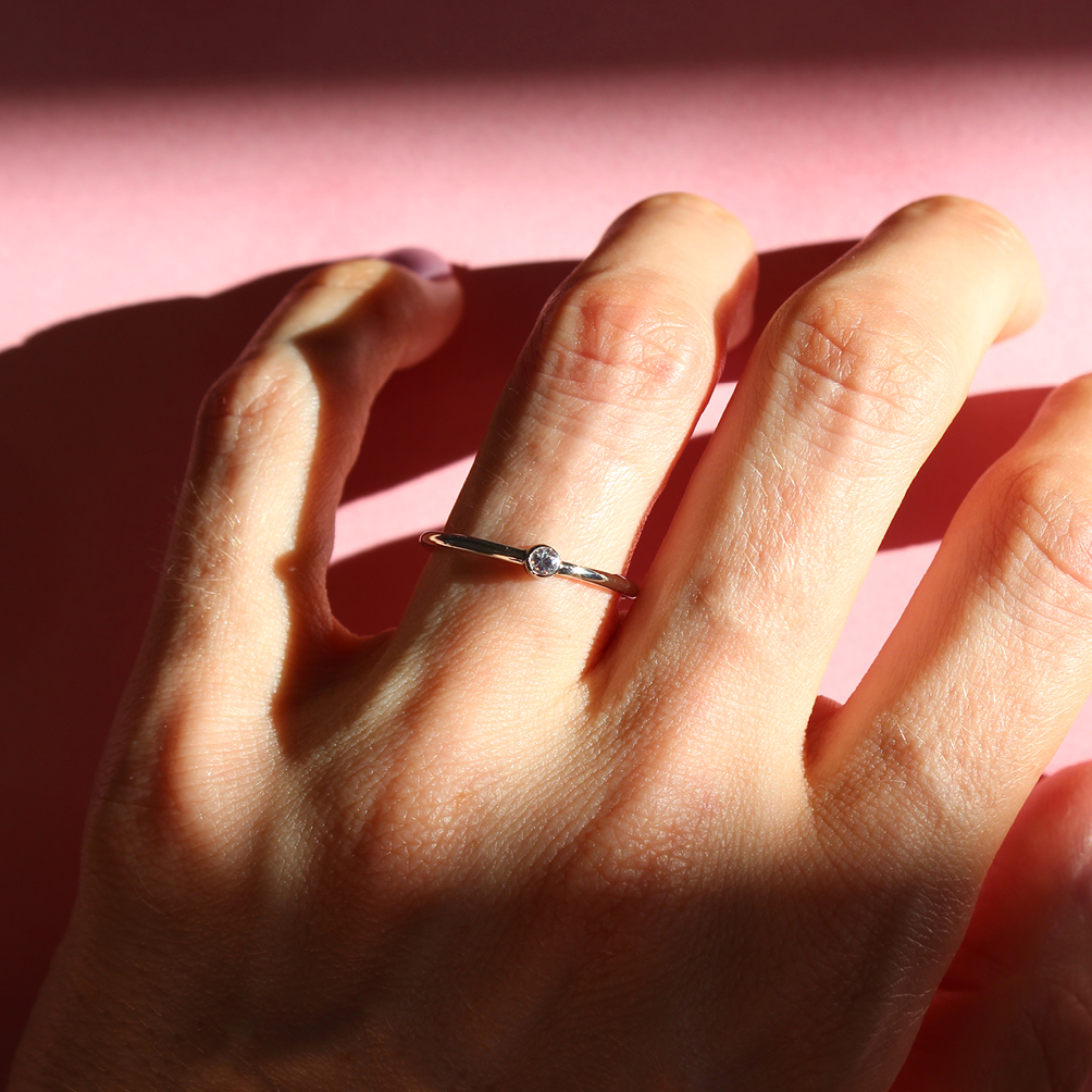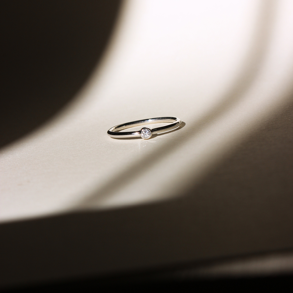 Anel em ouro branco 18k com diamante.