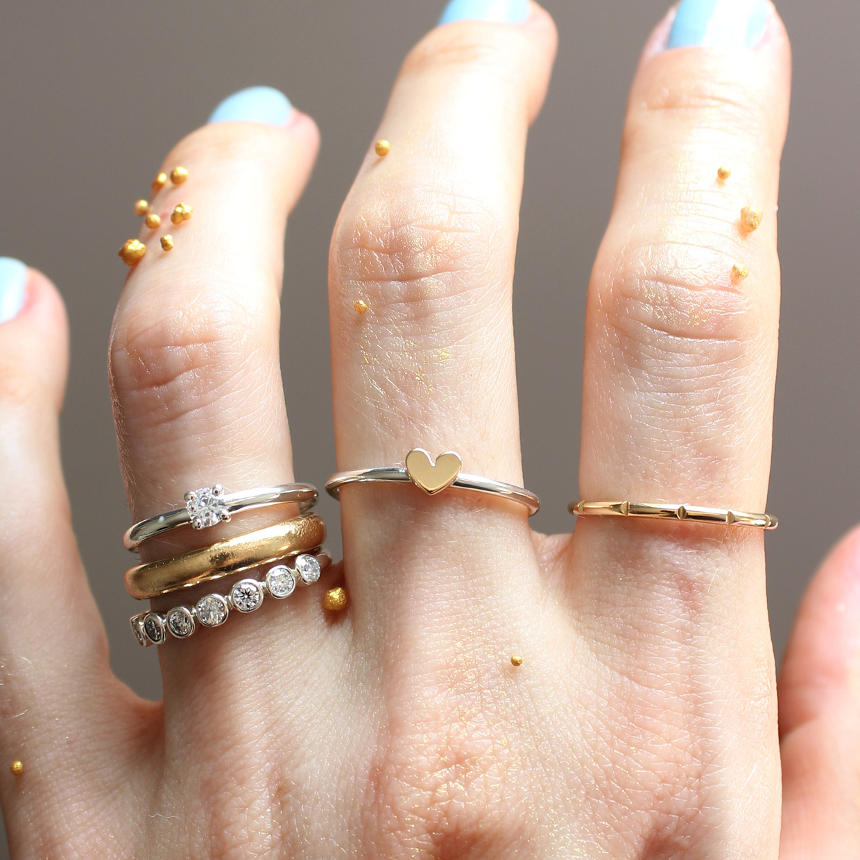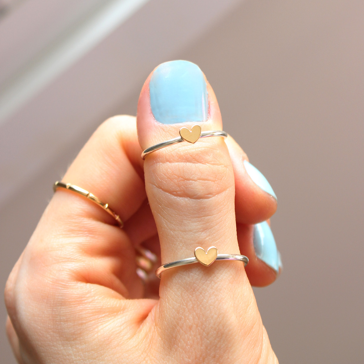 Joia feita à mão.  Aro liso em prata e coração em ouro amarelo 18k.