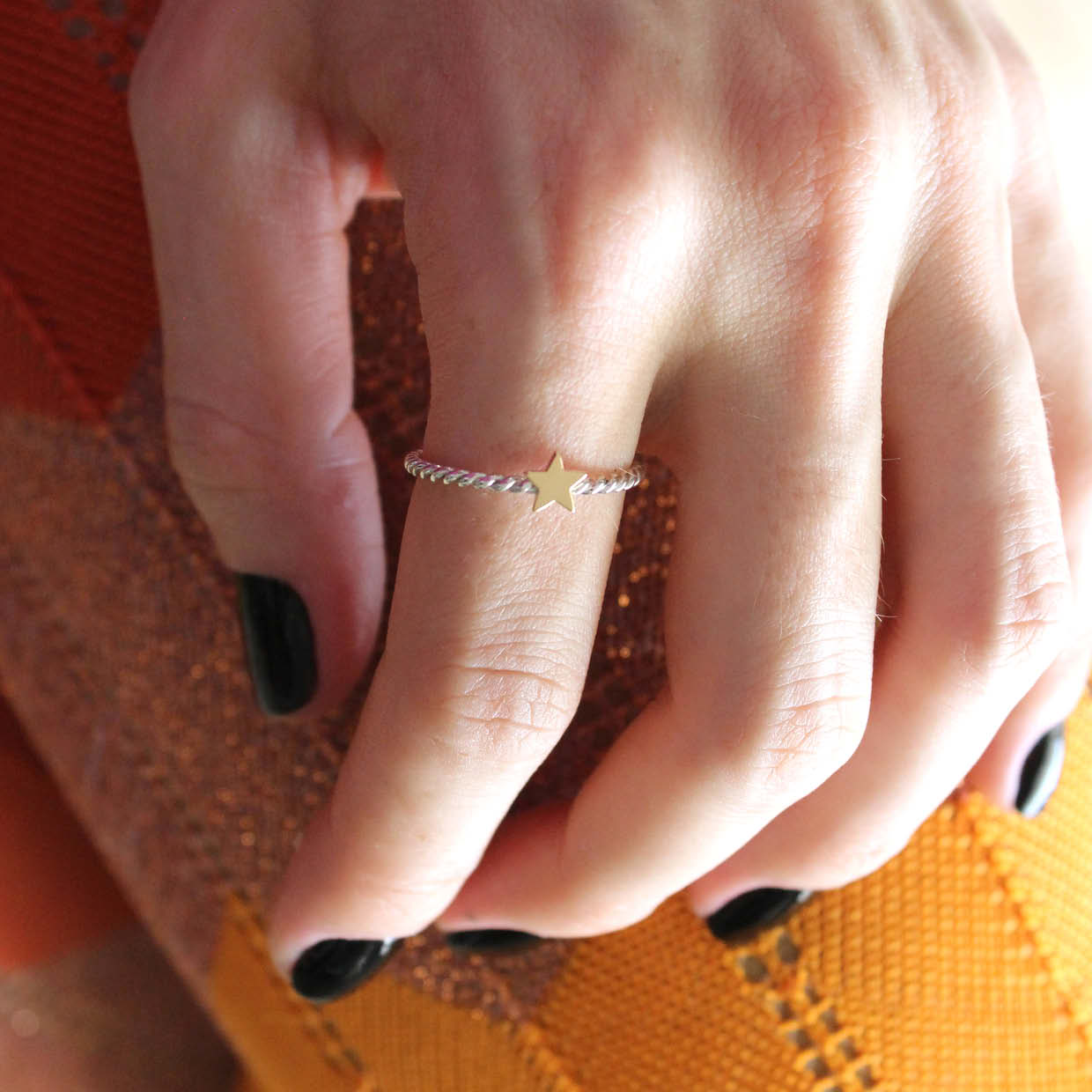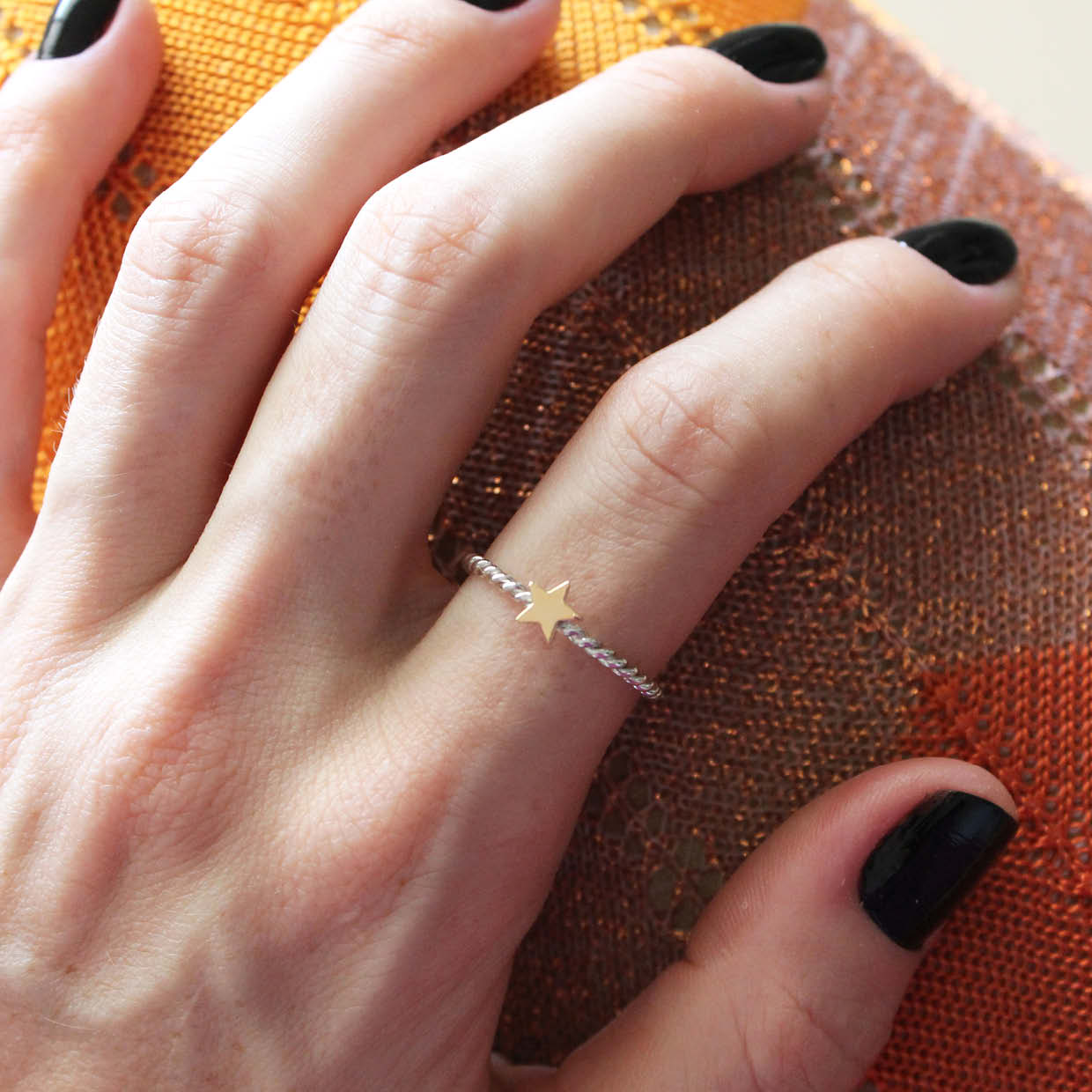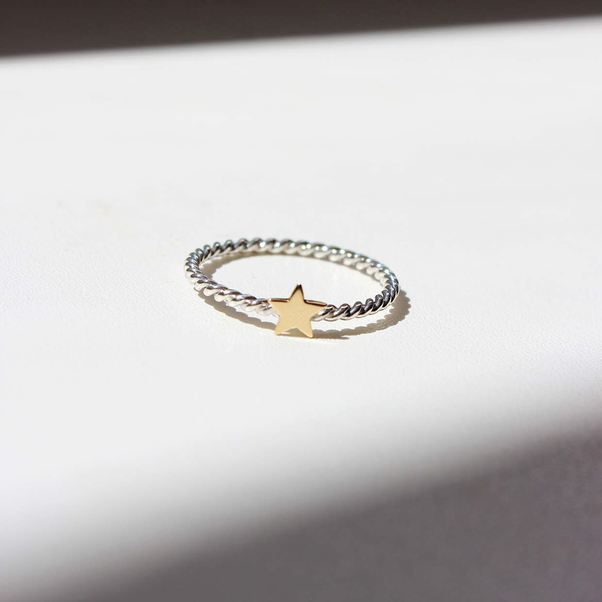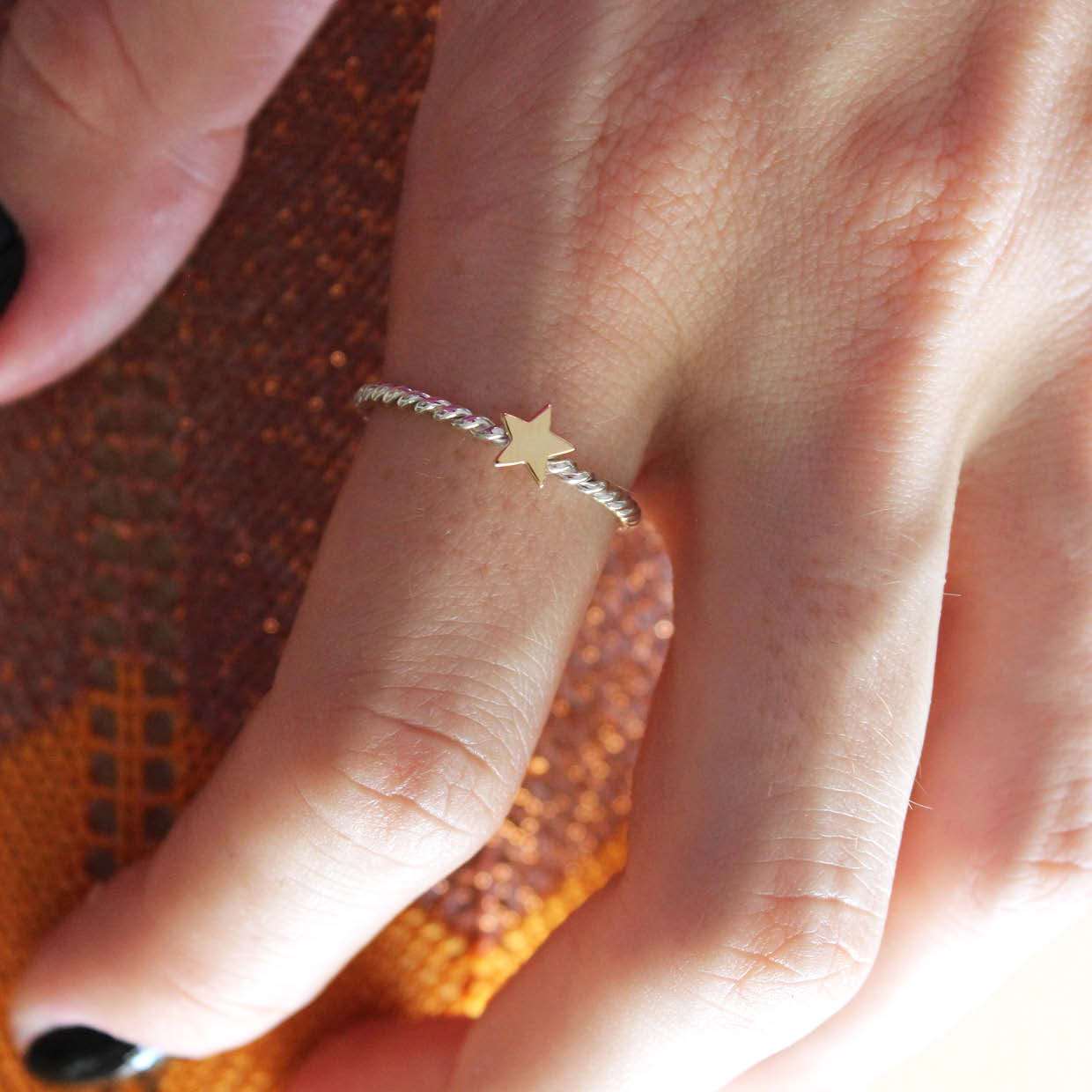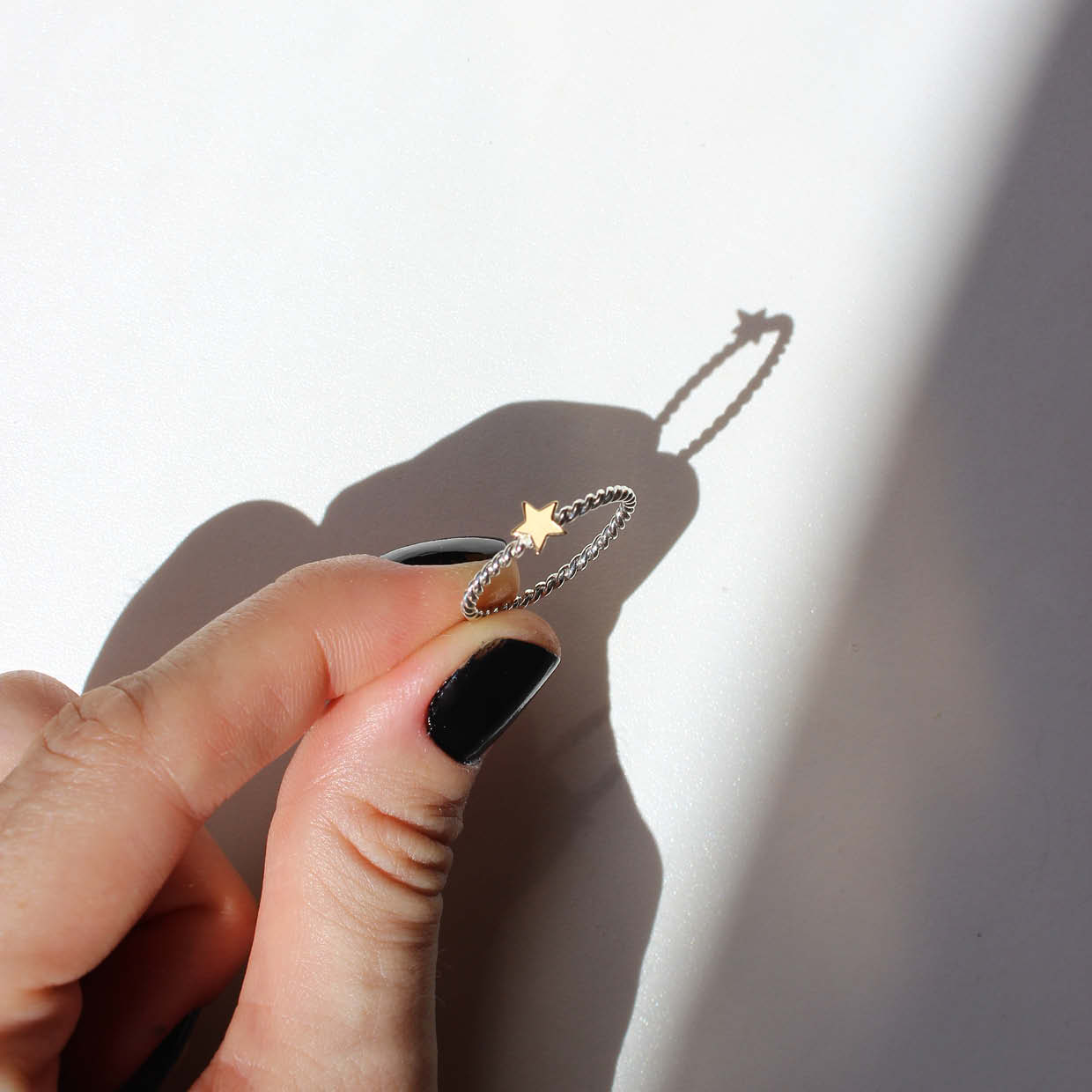 Linda joia feita à mão com aro em prata e estrela super delicada em ouro amarelo 18k. Uma joia para representar quem se ama.