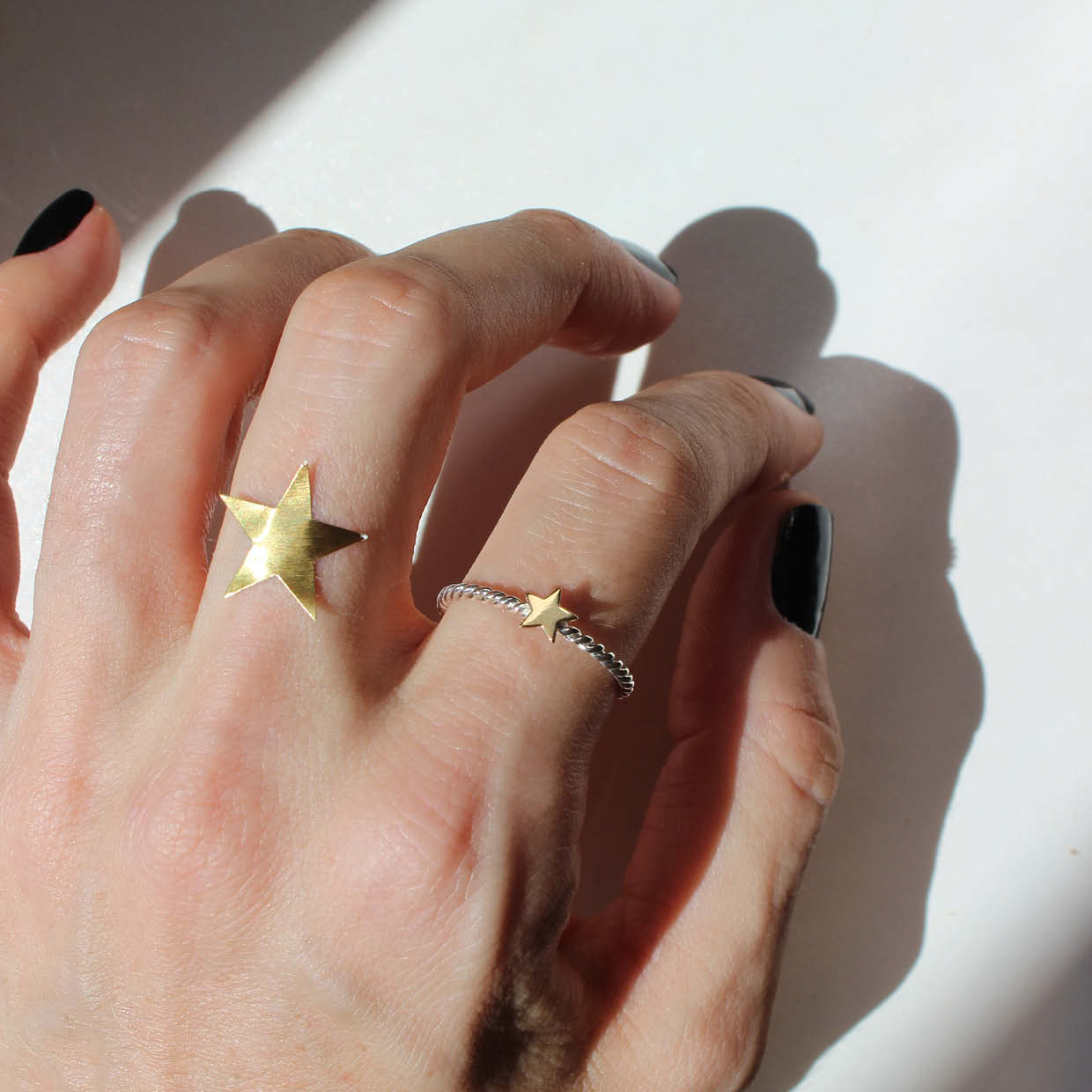 Joia feita à mão, com todo cuidado e carinho. Aro torcido em prata com estrela em ouro amarelo 18k.