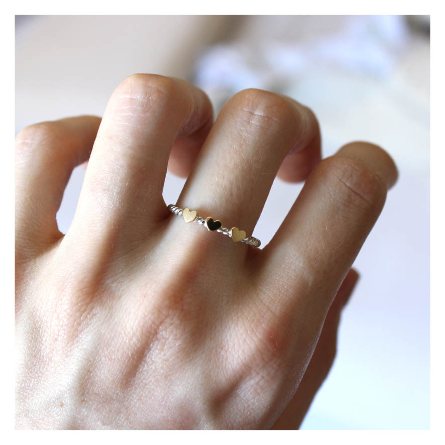Anel três corações – aro prata e corações em ouro amarelo. Lindo anel feito manualmente. Joia romântica, minimalista, delicada e atemporal.. Um mimo só!  ❤ muito afeto em cada detalhe