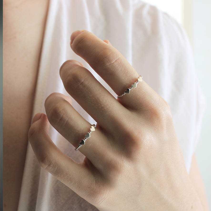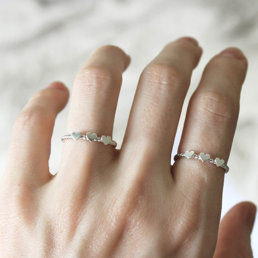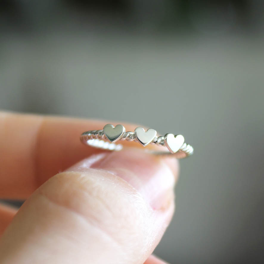 Uma unidade do anel com aro torcido e três corações ♥ ♥ ♥