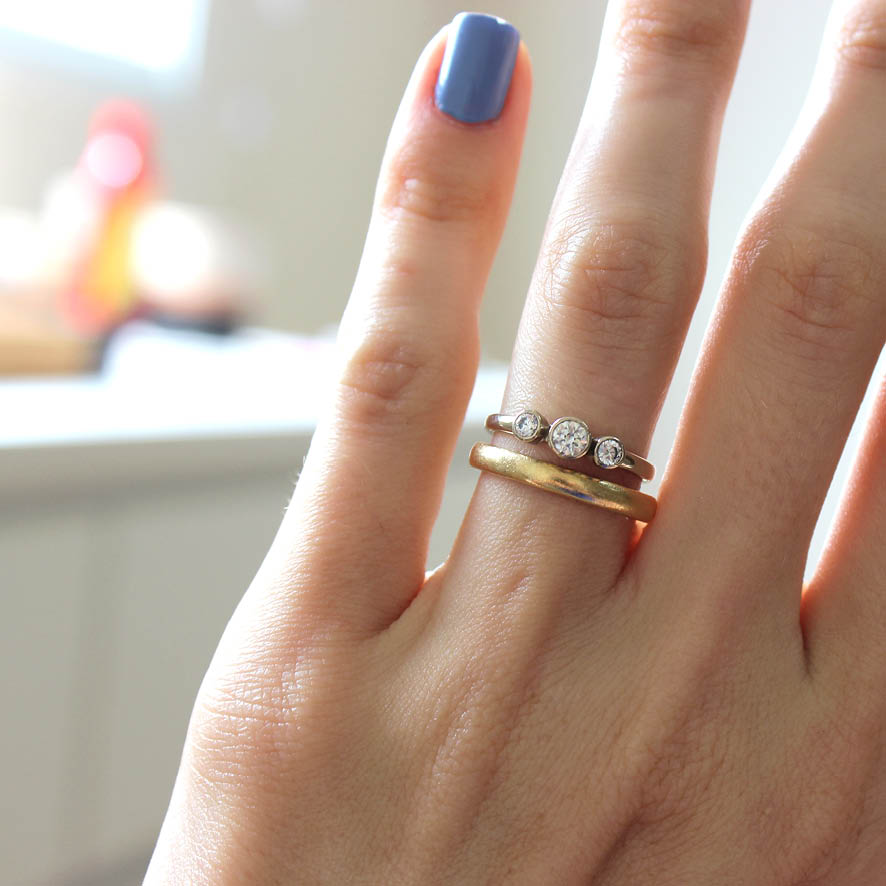 Dimensões: diamantes ou topázios de 2,5mm e 3,5mm. Largura do aro de 2,2mm.