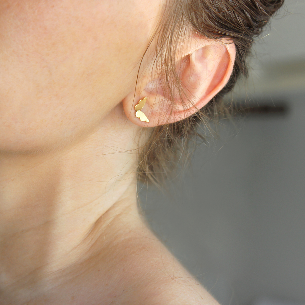 Brinco Asas Mini em ouro amarelo 18k. Joia feita a mão com todo cuidado e carinho para sair voando por aí =)