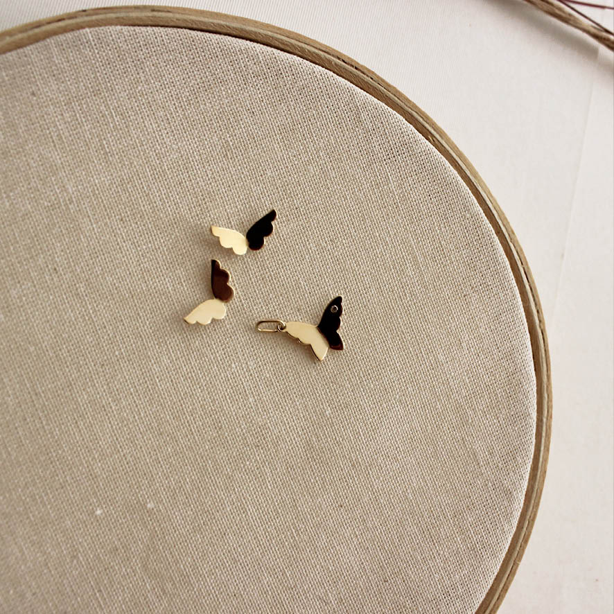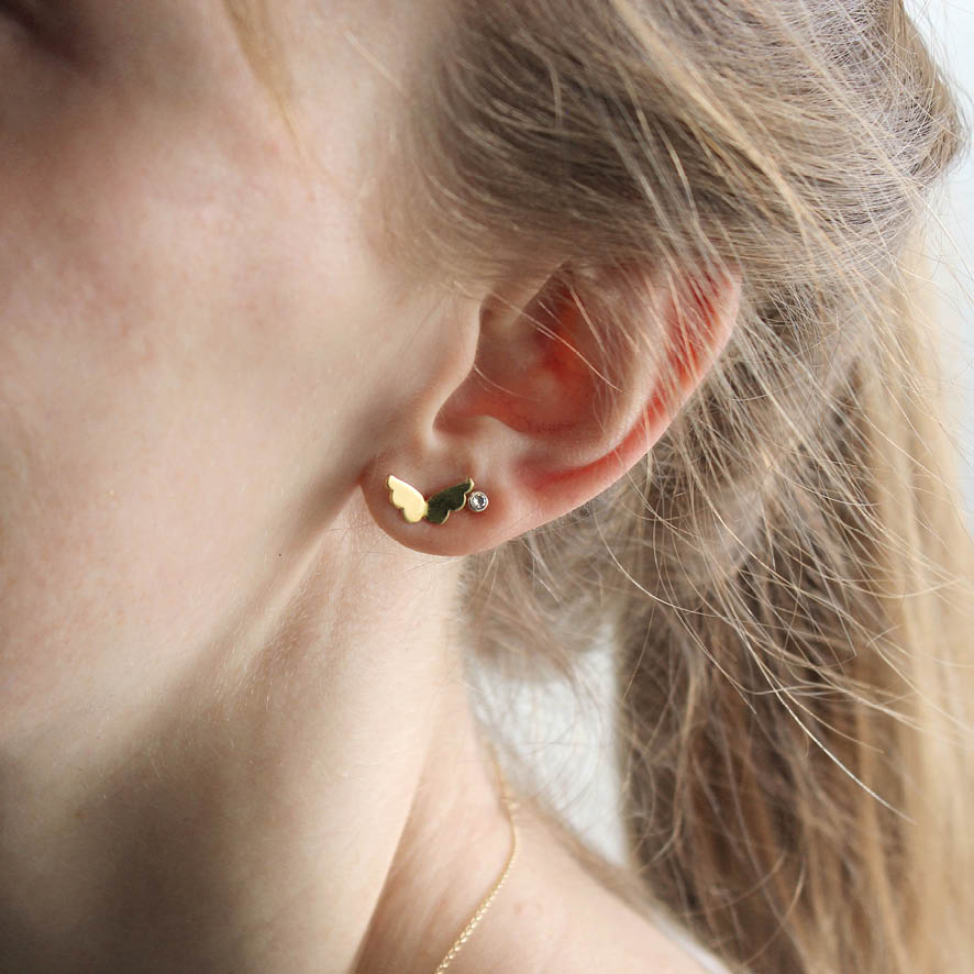 Brinco Asas Mini em ouro amarelo 18k. Joia feita a mão com todo cuidado e carinho para sair voando por aí =)