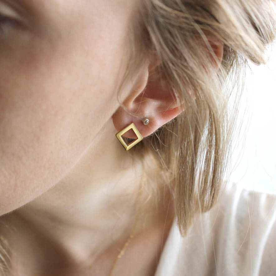 Dimensões: Brincos com as quatro laterais medindo 1cm.