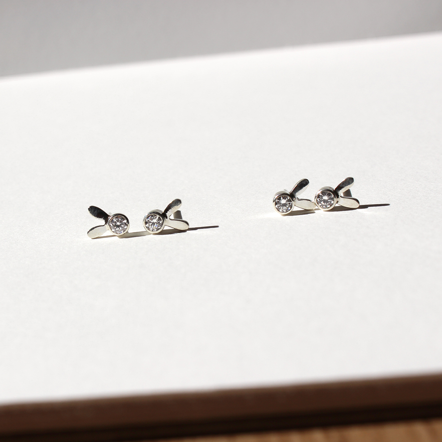 Brinco Coelho – para criança (ou adulto 🙃) – em prata 960 . Joia feita a mão com todo cuidado e carinho para sair por aí =)