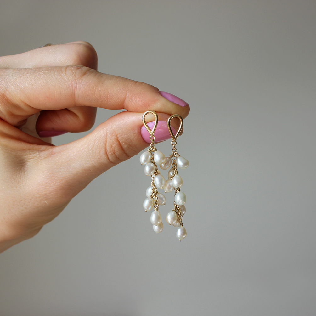 Delicados e leves brincos em ouro amarelo 18k com pérolas de água doce.