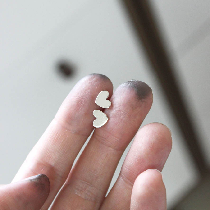 Delicados e românticos brincos de coração feitos à mão em prata 960