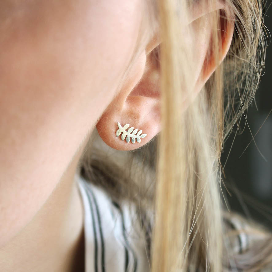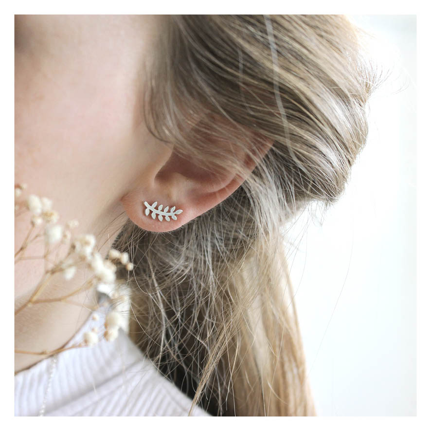 Brinco folha. Joia em prata 960
