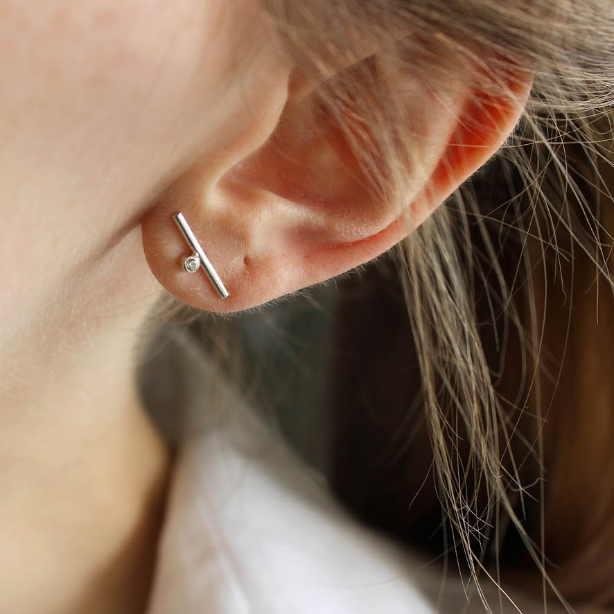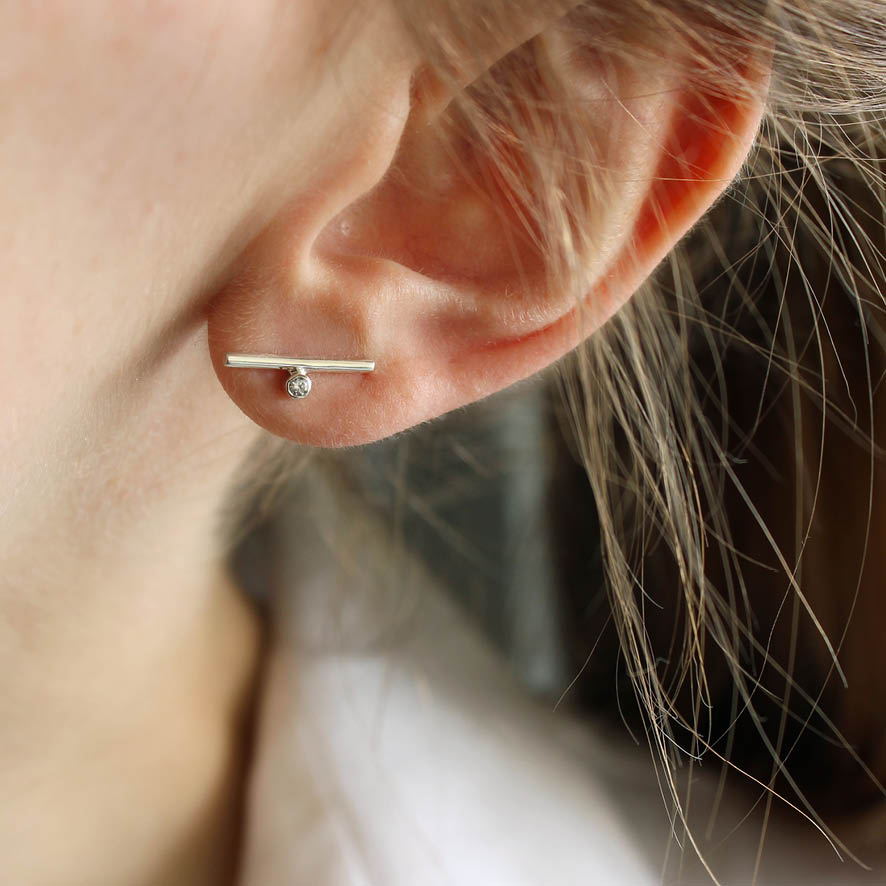 Brinco palito com topázio transparente. Joia feita a mão com todo cuidado e carinho para sair por aí =)