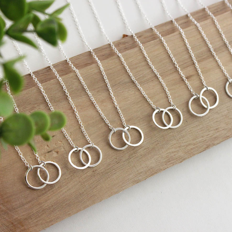 Círculos entrelaçados com 1,5cm de diâmetro. Fio quadrado do pingente com espessura de 1,3mm.