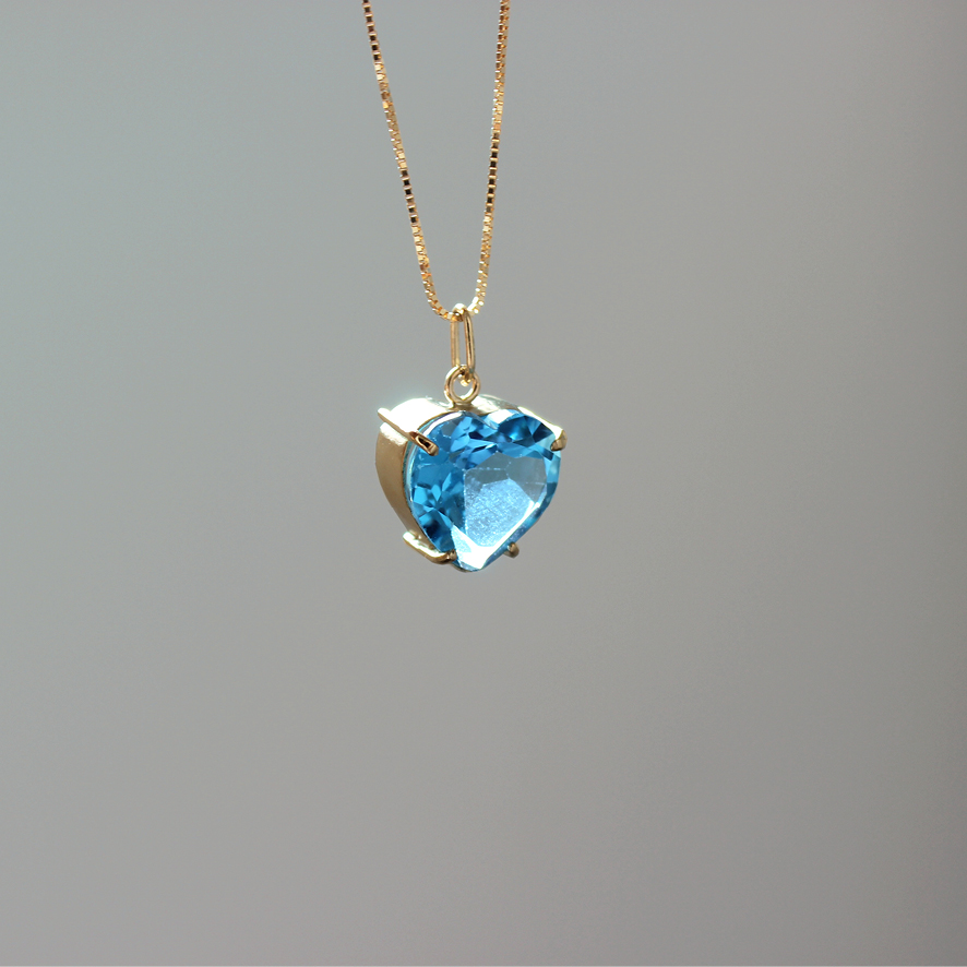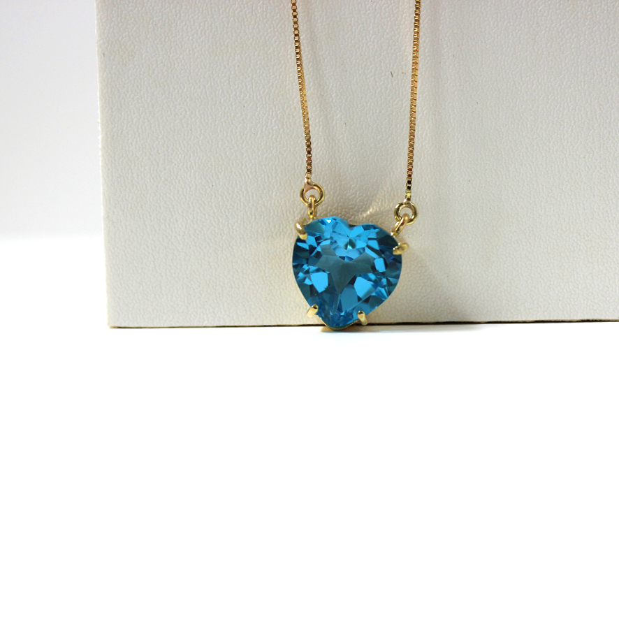 Colar coração de topázio azul – joia em ouro 18k