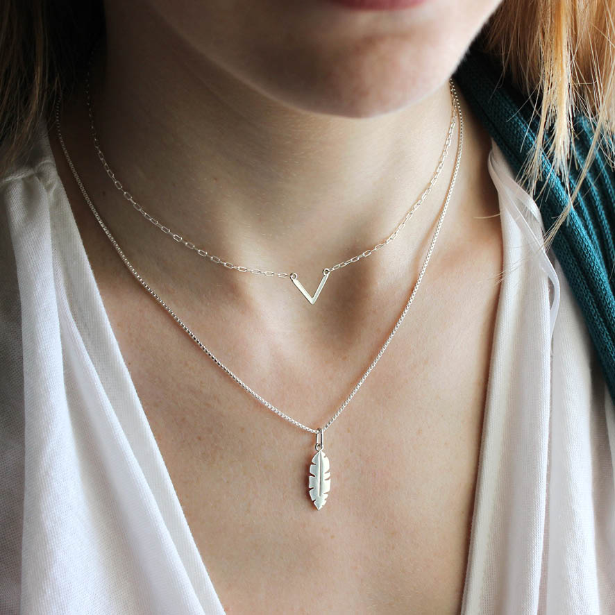 Colar folhinha, corrente tamanho padrão – em prata 960
