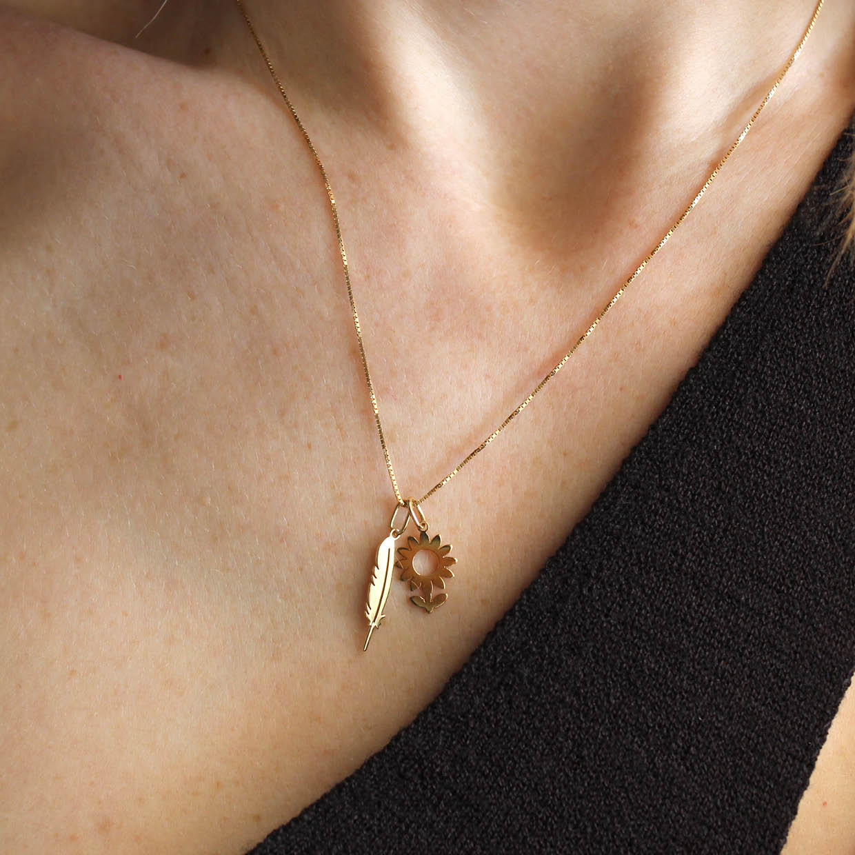 13/12/2024Colar Girassol + Pena – ouro amarelo 18k