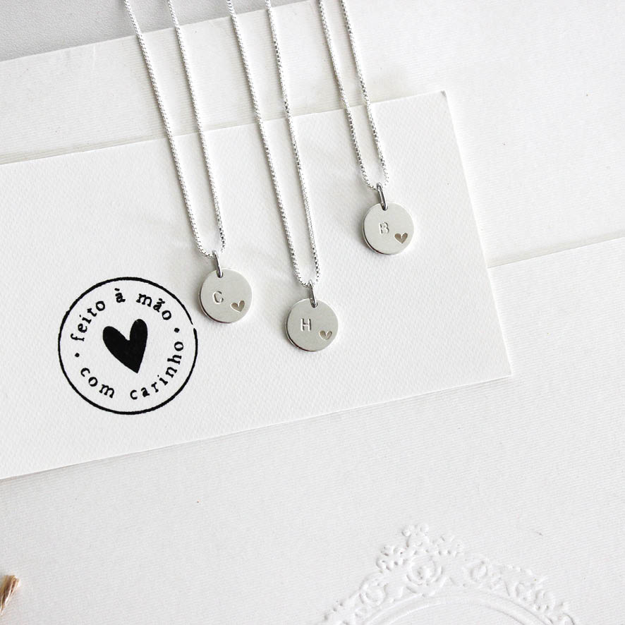 Colar Inicial com coração vazado e letra escolhida por você. Lindo colar personalizado feito manualmente em prata 960. Joia romântica, minimalista, delicada e atemporal.. Um mimo só!  ❤ muito afeto em cada detalhe