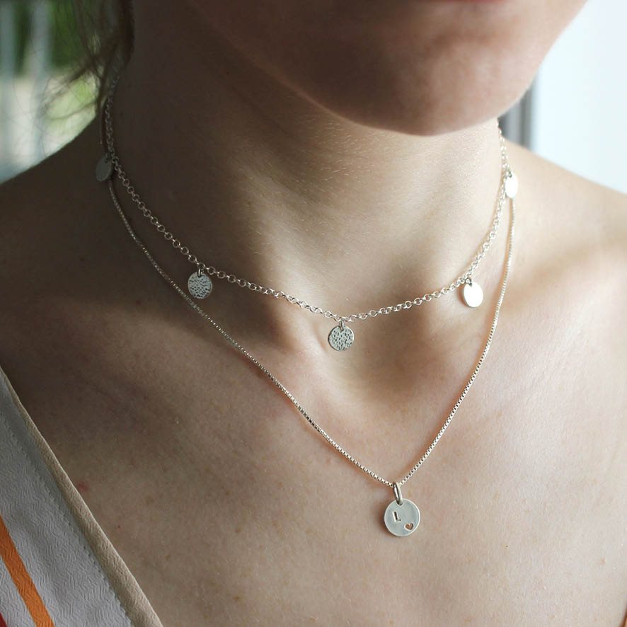 Colar lua cheia – pingente com um dos lados martelado e outro liso. Cada design de nossas joias são um feito complexo de artesanato exclusivo criado para você.