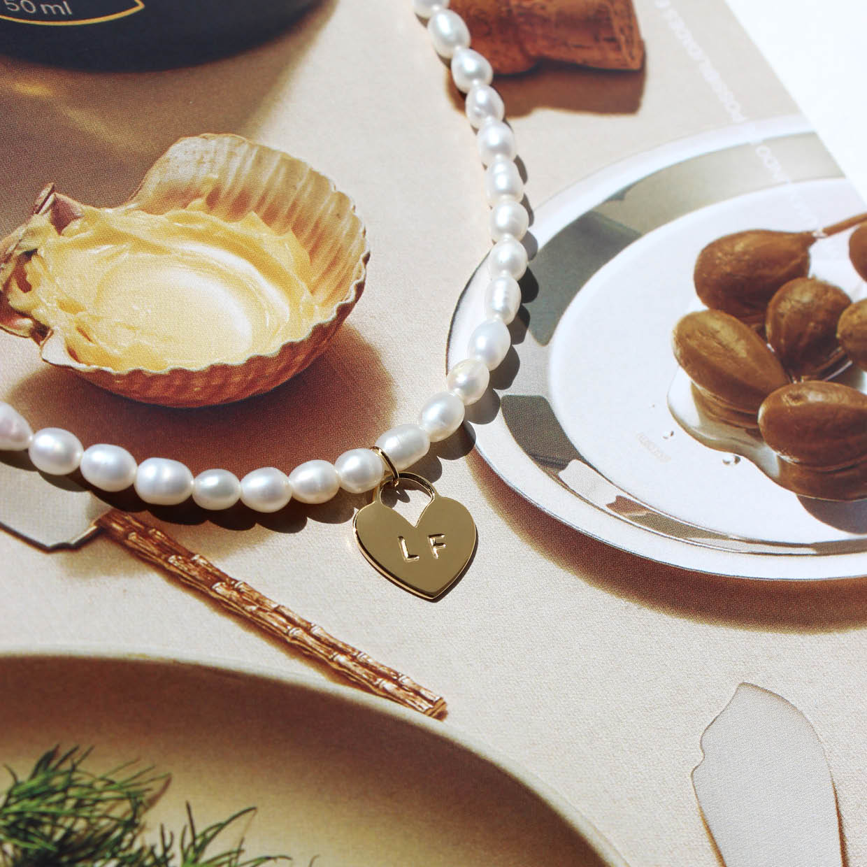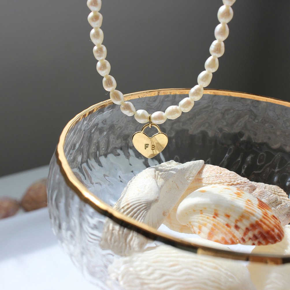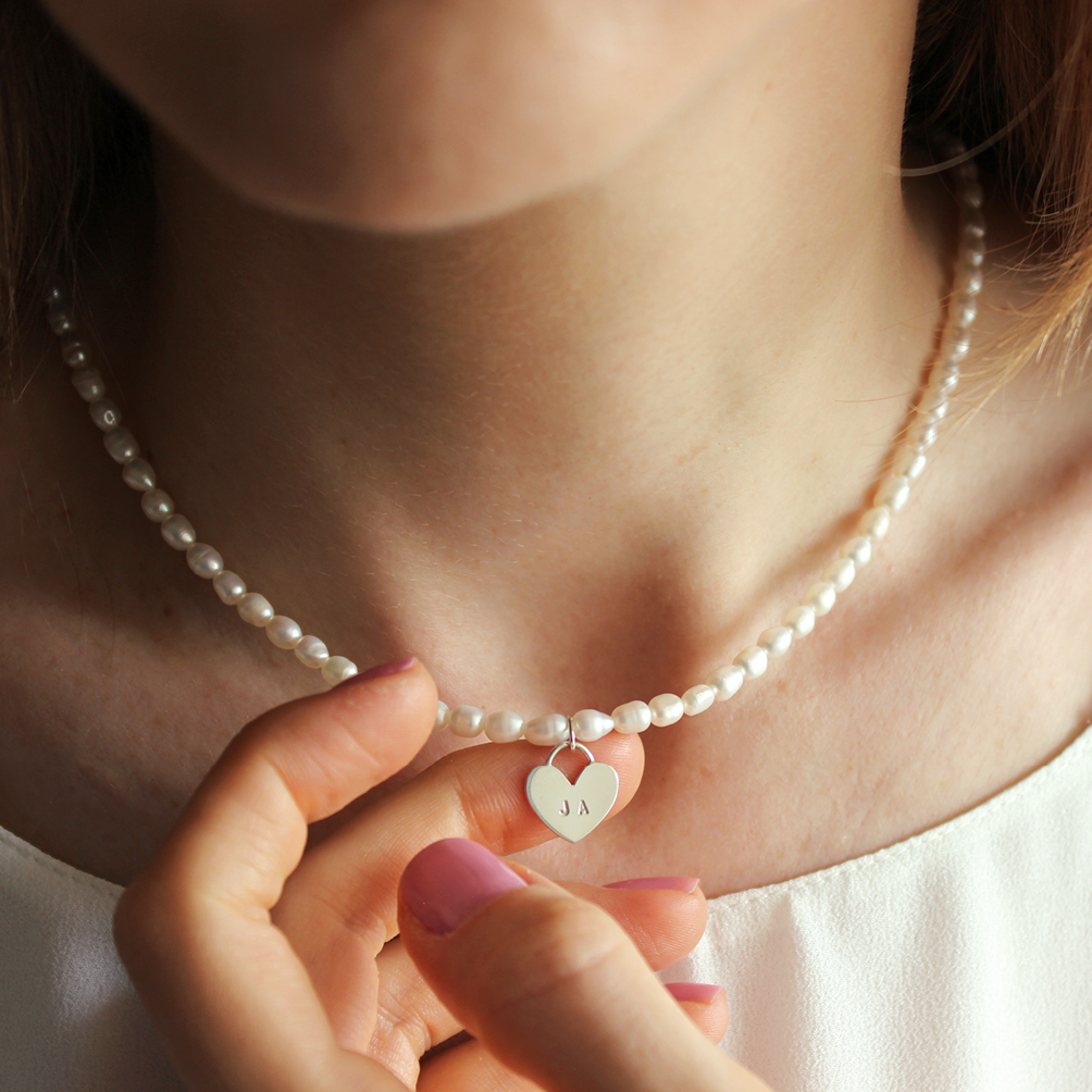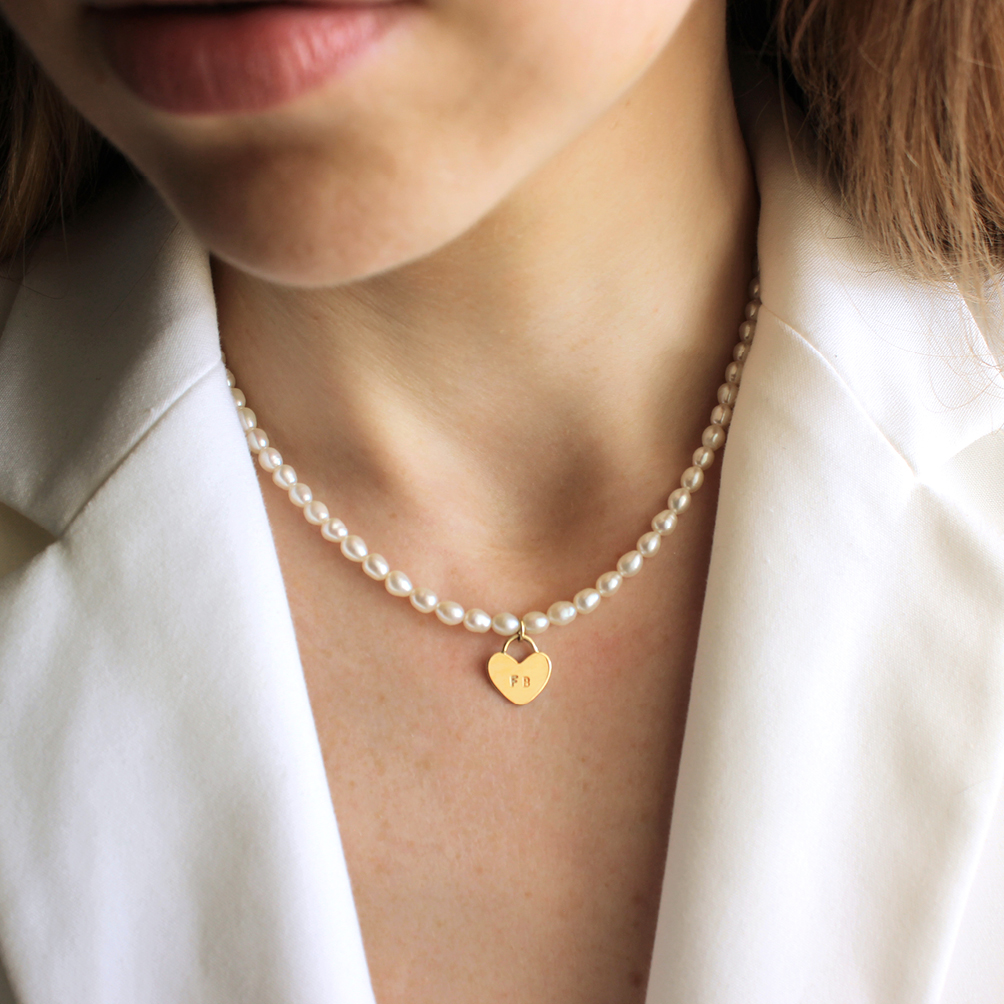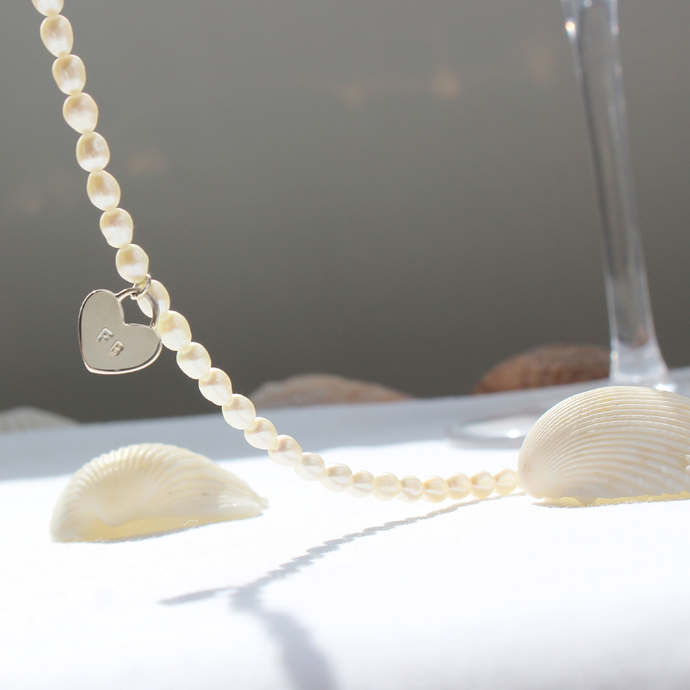 Com pérolas de água doce.