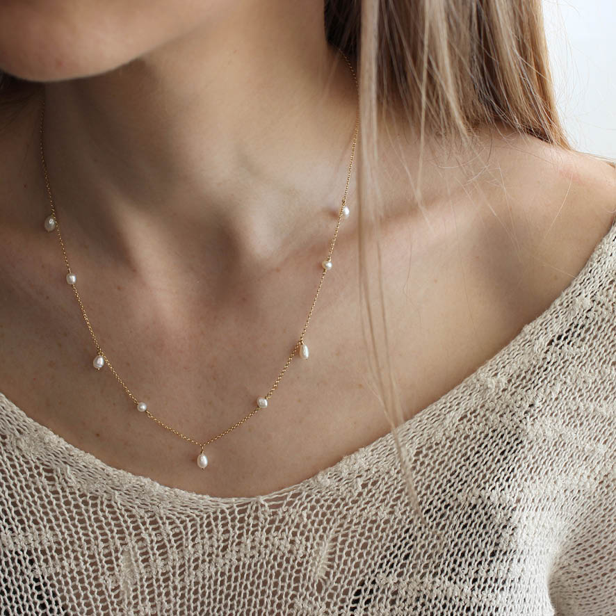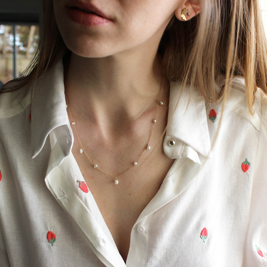 Delicado colar de pérolas de água doce em ouro amarelo 18k.
