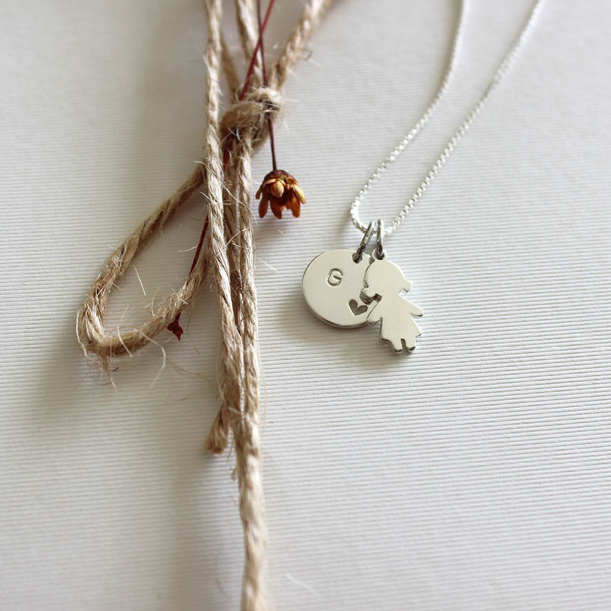 Colar dois filhos de mãos dadas. Joia em prata 960