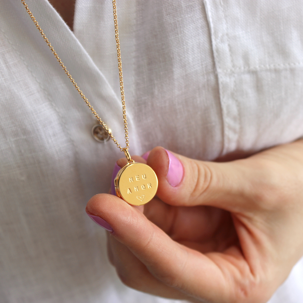 Colar relicário – prata com banho de ouro amarelo