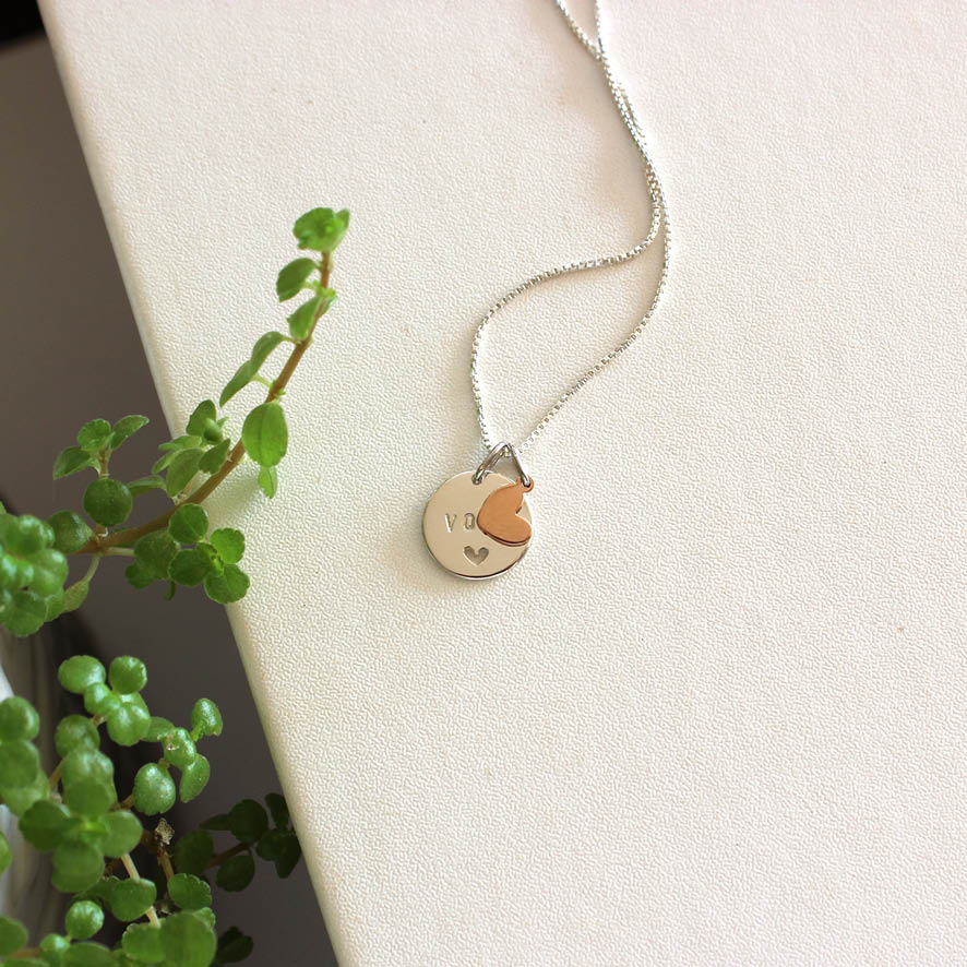 Medalha prata com pingente coração em ouro 18k. Joia feita a mão com todo cuidado e carinho para quem merece ganhar um presente super especial!