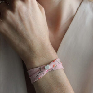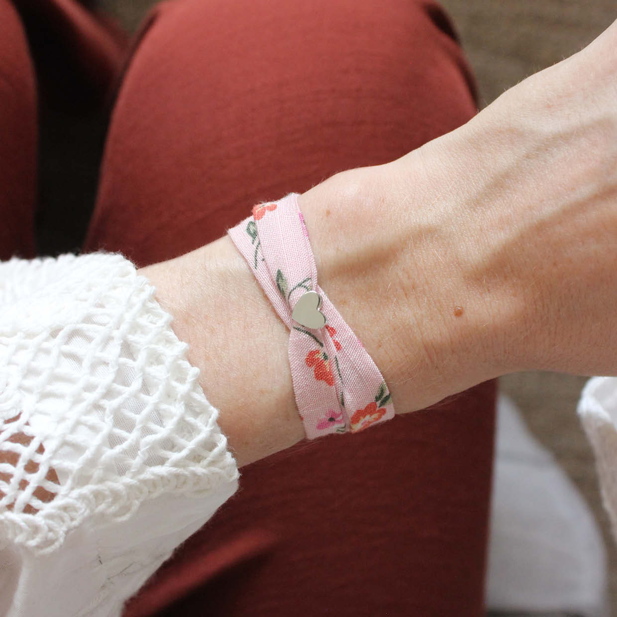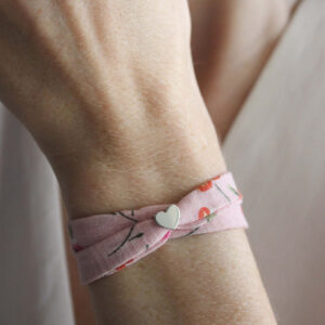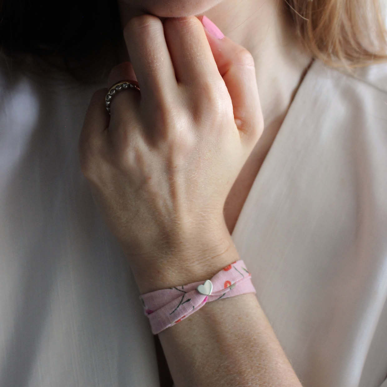 Pulseira de coração com tecido. Em prata 960. Joia delicada e cheia de significado.