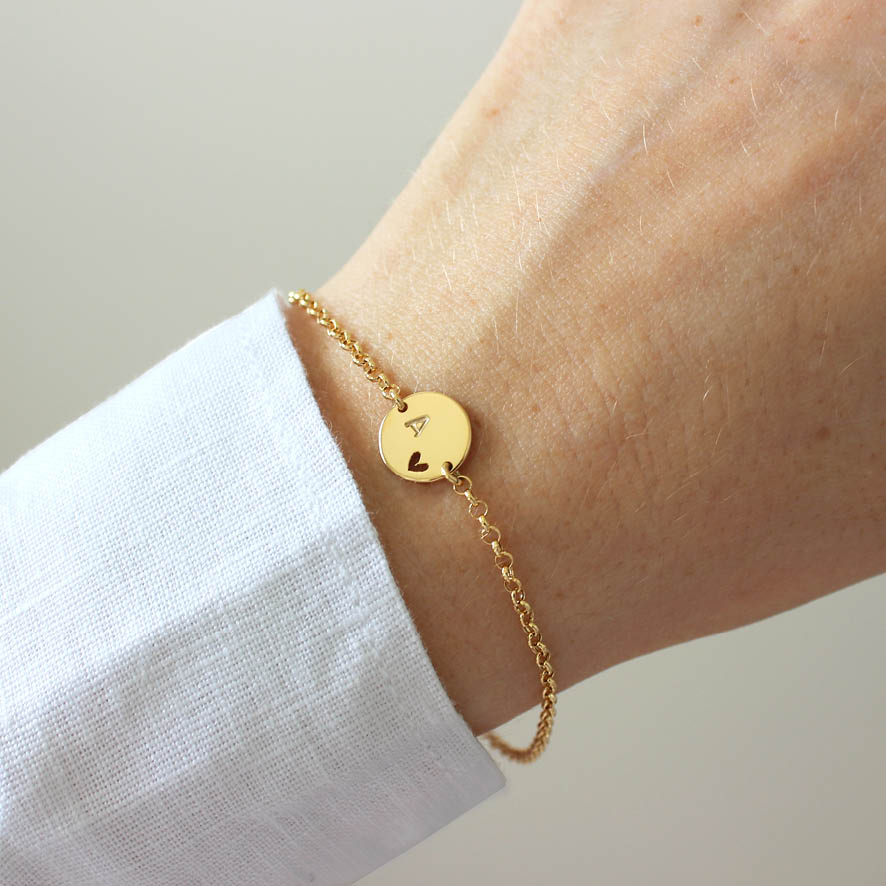 Linda, delicada e romântica pulseira inicial, com coração vazado. Joia para ser usada em todas ocasião por ser minimalista e atemporal.
