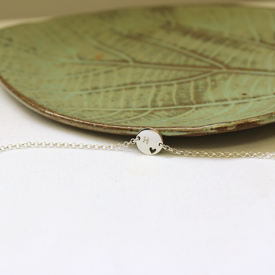 Pulseira Inicial tamanho P, com coração vazado e letra.