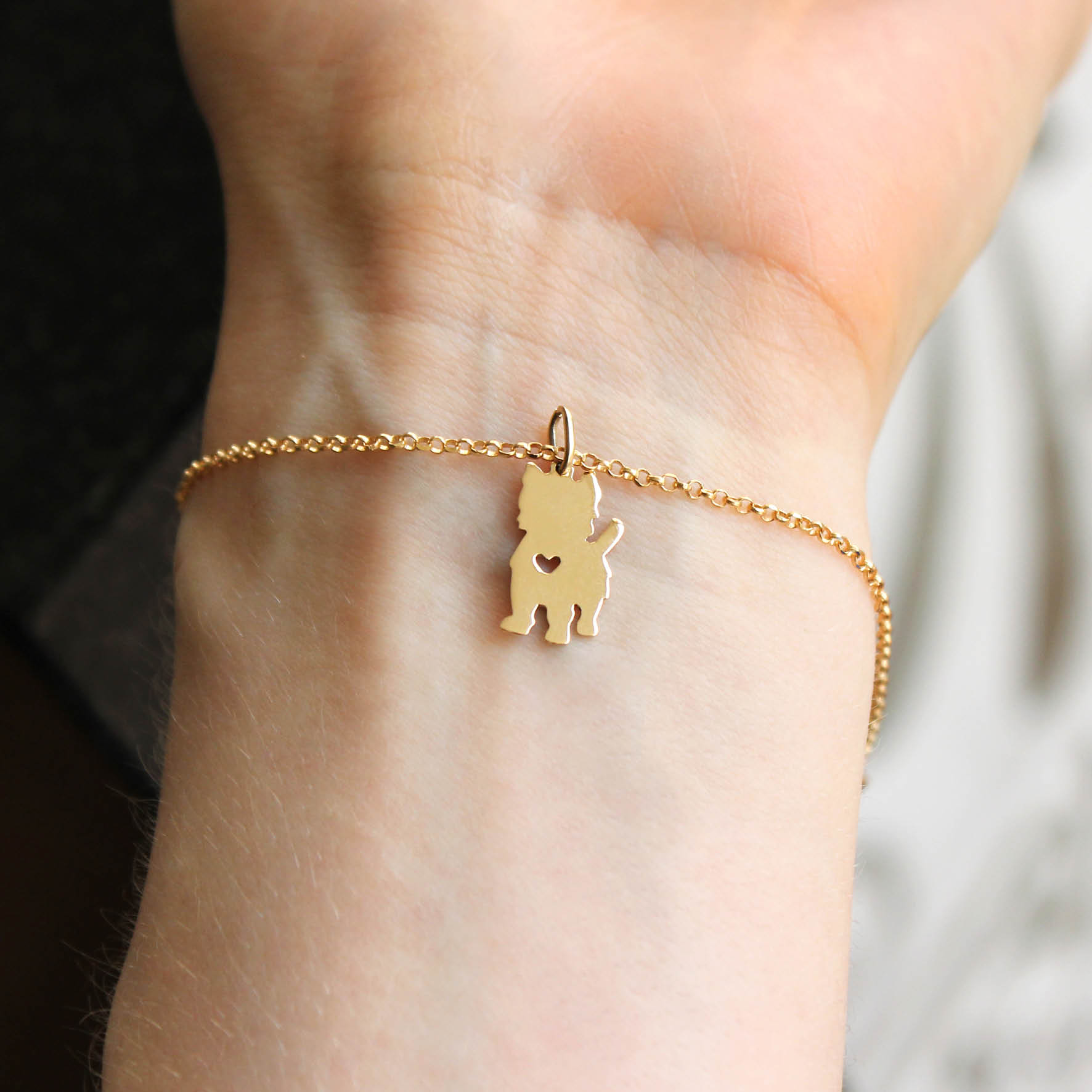 Pulseira pet em ouro amarelo 18k – Escolha o desenho do pet. Um mimo para não tirar mais!❤ Joia delicada e cheia de significado.